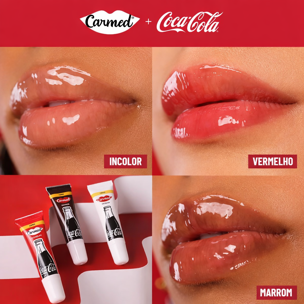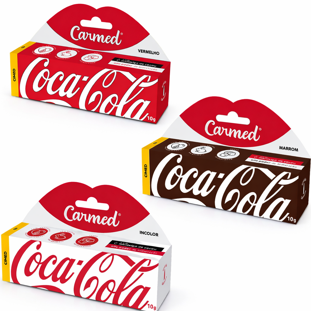 Kit Carmed Coca-Cola com 3 Unidades | Hidratante Labial 10g um kit irresistível com 3 hidratantes labiais Carmed Coca-Cola, pensado para quem ama cuidado, estilo e um toque divertido nos lábios.