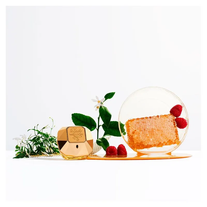 Um perfume feminino de excessos. Excesso de atitude, excesso de glamour, excesso de sedução. Um perfume hiper-feminino inspirado nos vestidos metálicos de Paco Rabanne. O glamour é perceptível logo no frasco, que inspira luxo e modernidade no formato dourado com gravações em relevo e formato de pedra preciosa. Assim, o design esboça exatamente o que o perfume é: uma preciosidade. O cheiro de Lady Million As notas de topo e de coração florais e cítricas associadas às notas de fundo de mel e patchuli trazem também, um excesso de frescor. Lady Million faz referência à mulher que todas as outras sonham em ser e todo homem sonha em ter. A mulher Paco Rabanne Lady Million está sempre envolvida em jogos de sedução. Ela é poderosa, competitiva, sedutora. Ela sabe que pode conseguir tudo o que quer, portanto não se contenta com a perda. Ganhar é irresistível. A Marca: Paco Rabanne sempre teve a ousadia como parte de seu estilo. A marca é francesa, mas foi criada pelo estilista espanhol Francisco Rabaneda Cuervo. Suas primeiras criações foram joias e acessórios irreverentes, que fizeram sucesso por seu estilo vanguardista. Paco Rabanne expandiu sua linha de produtos para roupas e sapatos futuristas, cheios de geometrias. A marca foi a pioneira no uso de metais na construção de suas peça
